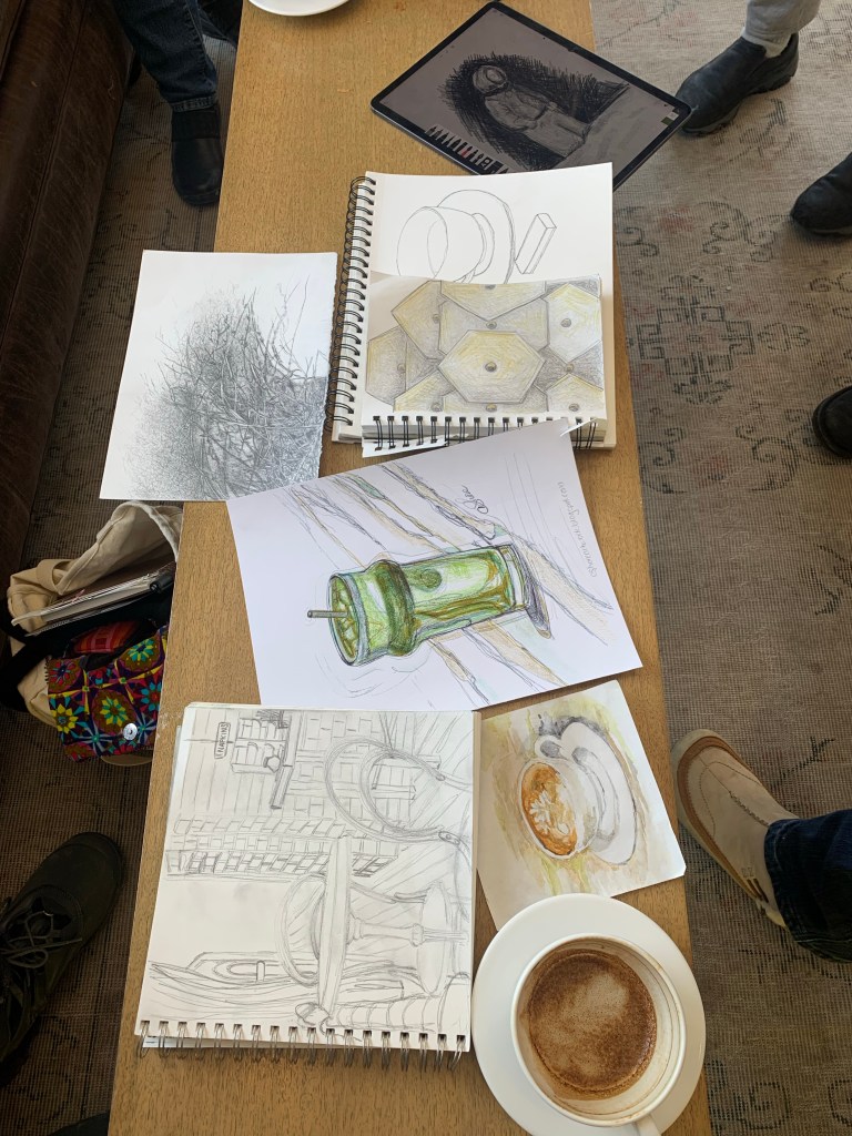 a cold windchill of -31 for today but this did not stop our arting group to come out to draw at the Charmant Hotel this morning.